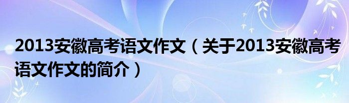 本文關于2013安徽高考語文作文的簡介就講解完畢,希望對大家有所幫助。