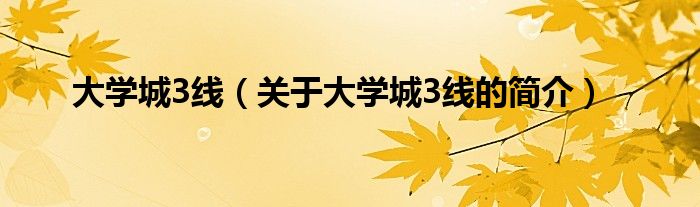 本文關于大學城3線的簡介就講解完畢,希望對大家有所幫助。