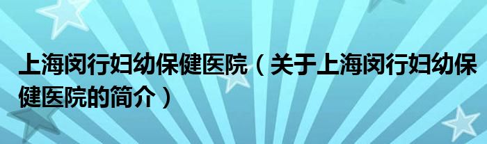 本文關于上海閔行婦幼保健醫院的簡介就講解完畢,希望對大家有所幫助。