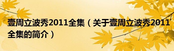 本文關于壹周立波秀2011全集的簡介就講解完畢,希望對大家有所幫助。