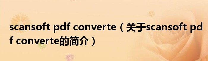 大家好,scansoft pdf converte,關(guān)于scansoft pdf converte的簡介很多人還不知道,現(xiàn)在讓我們一起來看看吧!