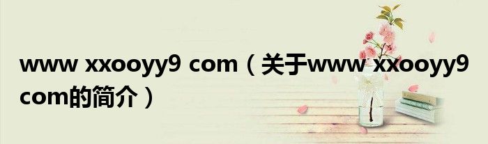 本文關于www xxooyy9 com的簡介就講解完畢,希望對大家有所幫助。