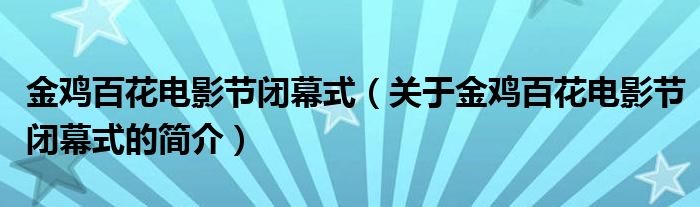 本文關于金雞百花電影節閉幕式的簡介就講解完畢,希望對大家有所幫助。