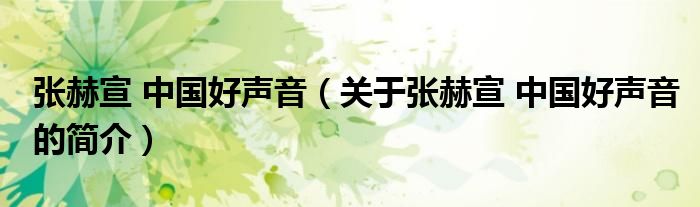 大家好,張赫宣 中國好聲音,關于張赫宣 中國好聲音的簡介很多人還不知道,現在讓我們一起來看看吧!