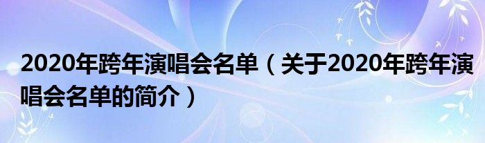 本文關于2020年跨年演唱會名單的簡介就講解完畢,希望對大家有所幫助。