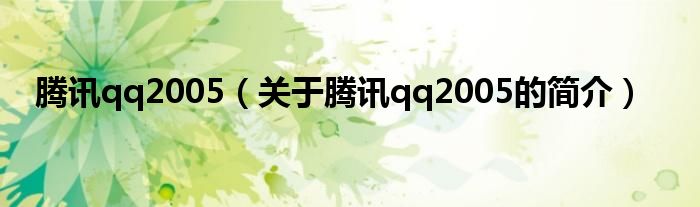 大家好,騰訊qq2005,關于騰訊qq2005的簡介很多人還不知道,現在讓我們一起來看看吧!