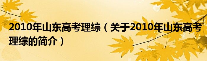 本文關于2010年山東高考理綜的簡介就講解完畢,希望對大家有所幫助。