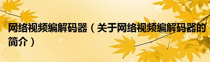大家好,網(wǎng)絡(luò)視頻編解碼器,關(guān)于網(wǎng)絡(luò)視頻編解碼器的簡(jiǎn)介很多人還不知道,現(xiàn)在讓我們一起來看看吧!