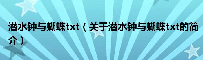 本文關于潛水鐘與蝴蝶txt的簡介就講解完畢,希望對大家有所幫助。