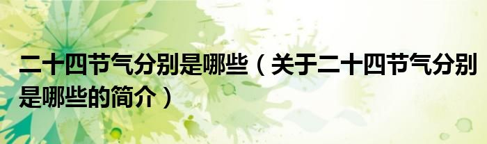 本文關(guān)于二十四節(jié)氣分別是哪些的簡(jiǎn)介就講解完畢,希望對(duì)大家有所幫助。