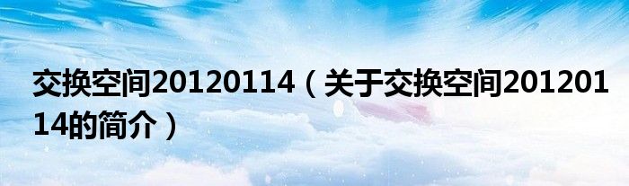 大家好,交換空間20120114,關(guān)于交換空間20120114的簡(jiǎn)介很多人還不知道,現(xiàn)在讓我們一起來(lái)看看吧!