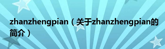 大家好,zhanzhengpian,關于zhanzhengpian的簡介很多人還不知道,現在讓我們一起來看看吧!