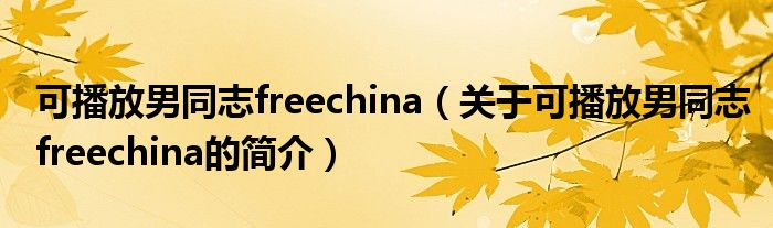 本文關(guān)于可播放男同志freechina的簡介就講解完畢,希望對大家有所幫助。