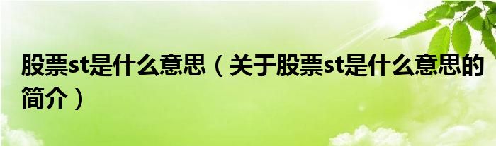 本文關于股票st是什么意思的簡介就講解完畢,希望對大家有所幫助。
