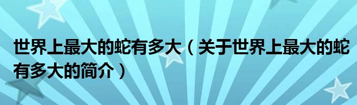 本文關(guān)于世界上最大的蛇有多大的簡(jiǎn)介就講解完畢,希望對(duì)大家有所幫助。