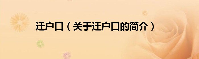 大家好,遷戶口,關于遷戶口的簡介很多人還不知道,現在讓我們一起來看看吧!