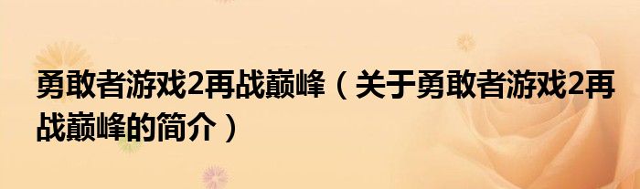 本文關(guān)于勇敢者游戲2再戰(zhàn)巔峰的簡(jiǎn)介就講解完畢,希望對(duì)大家有所幫助。