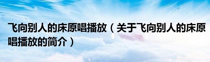 大家好,飛向別人的床原唱播放,關于飛向別人的床原唱播放的簡介很多人還不知道,現在讓我們一起來看看吧!