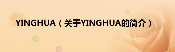大家好,YINGHUA,關于YINGHUA的簡介很多人還不知道,現在讓我們一起來看看吧!