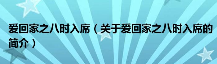 本文關(guān)于愛(ài)回家之八時(shí)入席的簡(jiǎn)介就講解完畢,希望對(duì)大家有所幫助。