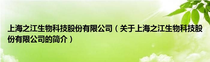 本文關于上海之江生物科技股份有限公司的簡介就講解完畢,希望對大家有所幫助。
