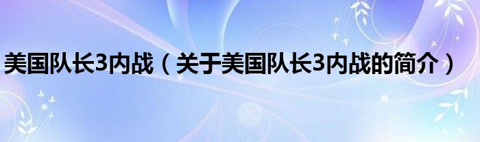 大家好,美國隊(duì)長3內(nèi)戰(zhàn),關(guān)于美國隊(duì)長3內(nèi)戰(zhàn)的簡介很多人還不知道,現(xiàn)在讓我們一起來看看吧!