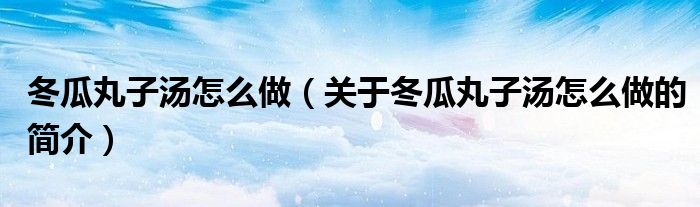 本文關于冬瓜丸子湯怎么做的簡介就講解完畢,希望對大家有所幫助。