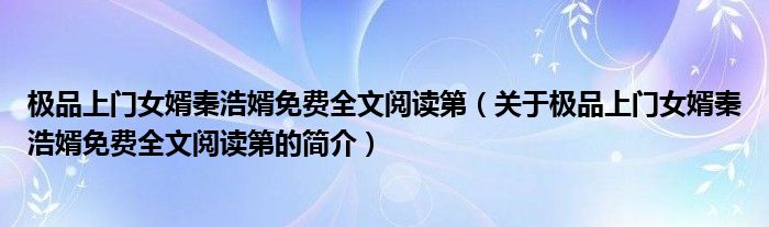 本文關于極品上門女婿秦浩婿免費全文閱讀第的簡介就講解完畢,希望對大家有所幫助。