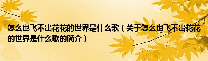 本文關(guān)于怎么也飛不出花花的世界是什么歌的簡(jiǎn)介就講解完畢,希望對(duì)大家有所幫助。