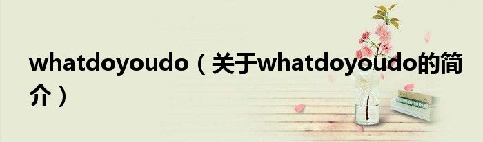 大家好,whatdoyoudo,關于whatdoyoudo的簡介很多人還不知道,現在讓我們一起來看看吧!