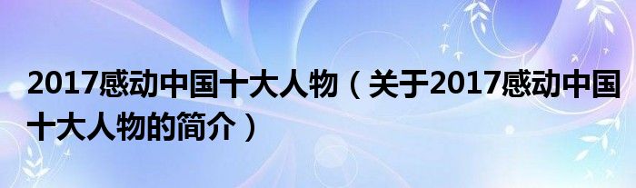 本文關于2017感動中國十大人物的簡介就講解完畢,希望對大家有所幫助。