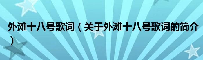 本文關于外灘十八號歌詞的簡介就講解完畢,希望對大家有所幫助。