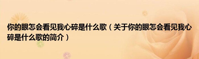本文關于你的眼怎會看見我心碎是什么歌的簡介就講解完畢,希望對大家有所幫助。