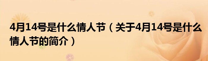 本文關于4月14號是什么情人節的簡介就講解完畢,希望對大家有所幫助。