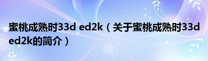 本文關于蜜桃成熟時33d ed2k的簡介就講解完畢,希望對大家有所幫助。