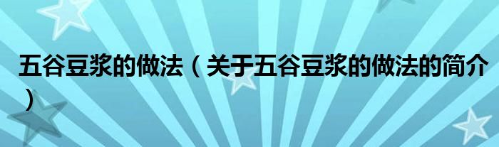 本文關于五谷豆漿的做法的簡介就講解完畢,希望對大家有所幫助。