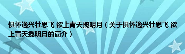 本文關(guān)于俱懷逸興壯思飛 欲上青天攬明月的簡介就講解完畢,希望對大家有所幫助。