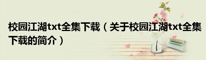 本文關于校園江湖txt全集下載的簡介就講解完畢,希望對大家有所幫助。