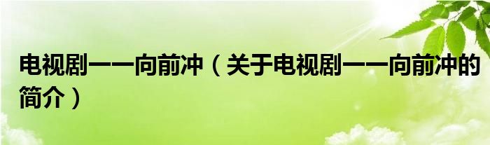 本文關于電視劇一一向前沖的簡介就講解完畢,希望對大家有所幫助。