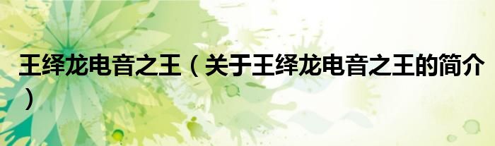 本文關于王繹龍電音之王的簡介就講解完畢,希望對大家有所幫助。