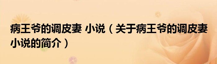 本文關(guān)于病王爺?shù)恼{(diào)皮妻 小說的簡介就講解完畢,希望對大家有所幫助。