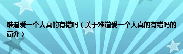 本文關于難道愛一個人真的有錯嗎的簡介就講解完畢,希望對大家有所幫助。