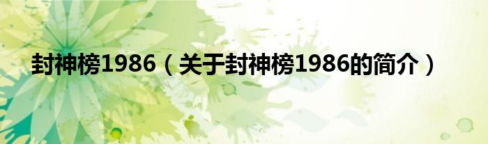 本文關于封神榜1986的簡介就講解完畢,希望對大家有所幫助。
