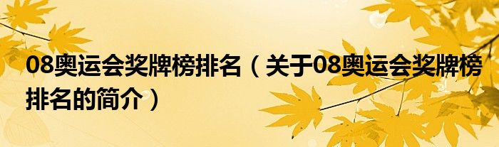 本文關(guān)于08奧運(yùn)會(huì)獎(jiǎng)牌榜排名的簡(jiǎn)介就講解完畢,希望對(duì)大家有所幫助。