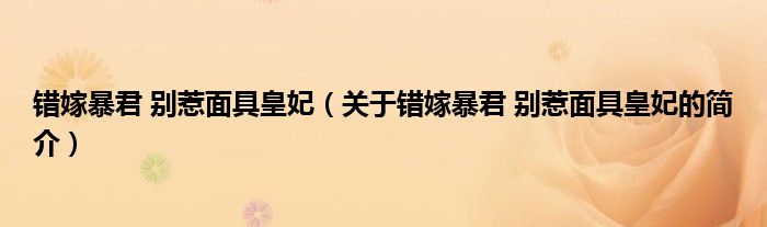 本文關于錯嫁暴君 別惹面具皇妃的簡介就講解完畢,希望對大家有所幫助。
