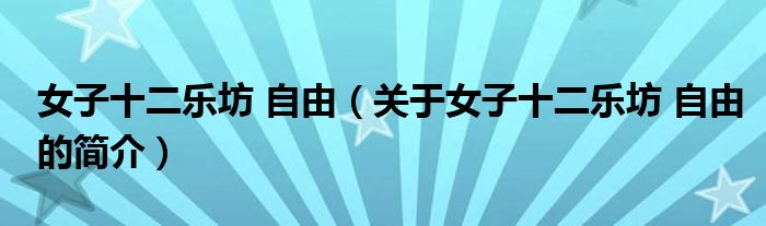 本文關于女子十二樂坊 自由的簡介就講解完畢,希望對大家有所幫助。