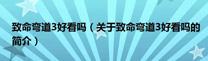 大家好,致命彎道3好看嗎,關(guān)于致命彎道3好看嗎的簡介很多人還不知道,現(xiàn)在讓我們一起來看看吧!