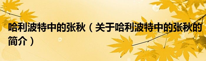 本文關(guān)于哈利波特中的張秋的簡介就講解完畢,希望對大家有所幫助。