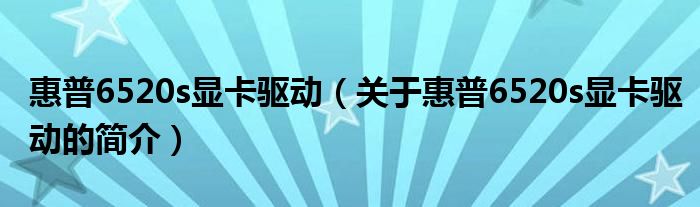 本文關于惠普6520s顯卡驅動的簡介就講解完畢,希望對大家有所幫助。