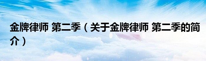 本文關于金牌律師 第二季的簡介就講解完畢,希望對大家有所幫助。